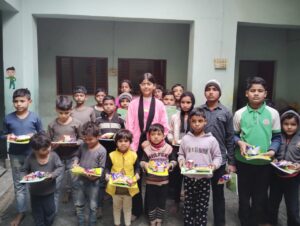 इस अवसर पर मुहम्मद शमसुद्दीन शम्स एवं उनकी पुत्री अक्सा फातिमा ने अनाथ आश्रम के सभी बच्चों को कॉपी, रबर, पेंसिल, शार्पनर, बिस्किट, कुरकुरे, केले सहित अन्य सामग्री वितरित की।