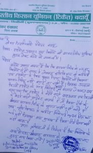 कुछ बैंक के सिर्फ ब्याज माफ कर रही हैं कुछ बैंकों में मूलधन में से भी माफी है यह दोहरा कानून किसानों को मंजूर नहीं सरकार अपना वायदा निभाया किसानों का भी ऋण माफ किया जाए आज मालवीय आवास में कड़कती सर्दी में टिकैत संगठन ने जोरदार नारेबाजी की थी इस अवसर पर जिले के प्रमुख महासचिव नरेंद्र कुमार सक्सेना जिले के वरिष्ठ उपाध्यक्ष ठाकुर ज अजय पाल सिंह जिला उपाध्यक्ष चौधरी रमेश सिंहनगर अध्यक्ष हारून गौश युवा जिला अध्यक्ष अमरपाल सिंह यादव सदर तहसील अध्यक्ष ठाकुर अर्जुन पाल सिंह कल्याण सिंह राठौर सिपटर सिंह राजेंद्र पाठक पप्पू सैफी केसर अली कृष्ण पाल सिंह बृजपाल प्रजापति सुरेश दीवान जी योगेश यादव योगेश यादव शैलेंद्र सिंह मनोज यादव कुबेर यादव कुबेर यादव मोनू यादव अहमद वली बिल्सी तहसील अध्यक्ष अख्तर खान अंजर खान युवा जिला प्रवक्ता शाहिद अली हरचरण लाल वर्मा उझानी नगर अध्यक्ष चंद्र मोहन वर्मा श्रीपाल सिंह यादव विशेष शंख धार रणवीर सिंह और पप्पू जिला सचिव सुनील शर्मा रामकुमार शर्मा जिला उपाध्यक्ष सद्दाम हुसैन आदि लोग मौजूद हैं। मंडल प्रवक्ता राजेश कुमार सक्सेना द्वारा लिखित पत्र नगर पालिका अध्यक्ष के लिए प्रदर्शन के दौरान किसानों को सर्दी के बचने के लिए अलाव लगाने के लिए पत्र दिया था परंतु सर्दी में ठिठुरते रहे।अन्नदाता नगर पालिका अध्यक्ष द्वारा अन्नदाताओं को नहीं लगवाए गए अलाव इस बात को लेकर किसानों में रहा आक्रोश उन्होंने कहा वक्त आने पर दिया जाएगा माकूल जवाब