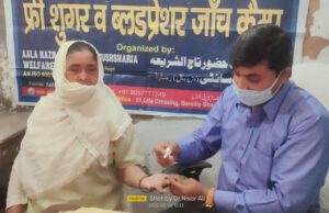 बरेली । आला हज़रत हुज़ूर ताजुशरिया वेलफेयर सोसायटी की जानिब से जसोली स्थित अल कुरैश सेवा अस्पताल में एक दिवसीय निःशुल्क स्वास्थ्य शिविर लगाया गया। जिसमें ब्लड शुगर व ब्लड प्रेशर के अलावा गर्भवती महिलायों का स्वास्थ्य परीक्षण किया गया। इससे पहले शिविर का उदघाटन सोसायटी के अध्यक्ष फरमान हसन खान (फरमान मियां) ने करते हुए शिविर की सराहना की। लोगो से खिदमत ख़ल्क़ के