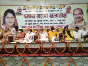 शपथ ग्रहण समारोहमे मुख्य अतिथि के रूप में प्रदेश उपाध्यक्ष देवेंद्र सिंह, राज्यमंत्री शिक्षा विभाग उत्तर प्रदेश सरकार श्रीमती गुलाब देवी, मुख्य विकास अधिकारी उमेश कुमार त्यागी, जिलाध्यक्ष ओमवीर खड़क वंशी, गुन्नौर विधायक अजीत कुमार उर्फ राजू यादव, भारतीय जनता पार्टी के पूर्व जिला अध्यक्ष राजेश सिंघल, पूर्व चेयरमैन राजेश शंकर उर्फ राजू आदि सहित अधिकारी तथा जनप्रतिनिधि मौजूद रहे। कार्यक्रम का संचालन श्री सौरभ कांत शर्मा ने किया।