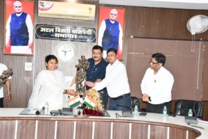 बदायूँ: 16 अप्रैल। जिलाधिकारी निधि श्रीवास्तव को शासन स्तर से विशेष सचिव उच्च शिक्षा बनाया गया है। बुधवार को कलेक्ट्रेट स्थित अटल बिहारी वाजपेयी सभागार में अधिकारियों व कर्मचारियों ने उनको भावभीनी विदाई दी। इस अवसर पर अधिकारियों ने उन्हें प्रतीक चिन्ह, बुके व शाल आदि भेंट किए। सभी ने उनके उज्जवल भविष्य व स्वस्थ्य जीवन की कामना की।