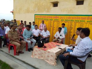 जाए। बाढ़ आने पर ग्रामीणों को सुरक्षित स्थानों या पहुंचाया जाए। भोजन, पेयजल, दवा आदि की व्यवस्था सुनिश्चित कराएं। स्वास्थ्य विभाग के अधिकारियों को निर्देशित किया कि गांव में स्वास्थ्य शिविर लगाकर दवाइयों का वितरण कराएं तथा मच्छर रोधी दवा का छिड़काव गांव में साफ सफाई टीम लगाकर कराया जाए।
