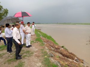 बदायूँ : 13 जुलाई। जिलाधिकारी मनोज कुमार ने सम्भावित बाढ़ को दृष्टिगत रखते हुए उपजिलाधिकारी दातागंज धर्मेन्द्र कुमार सिंह, अधिशासी अभियन्ता उमेश चन्द्र के साथ गुरुवार को तहसील दातागंज अन्तर्गत कटरा सआदतगंज में बाढ़ चौकी एवं राहत केन्द्र का जायजा लेते हुए व्यवस्थाओं को