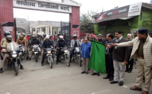 बदायूँ : 05 जनवरी। यातायात नियमों के संबंध में लोगों को जागरूक करने हेतु दिनांक 05 जनवरी 2023 से 04 फरवरी 2023 तक चलाये जा रहे अभियान सड़क सुरक्षा माह को सफल बानाने के उद्देश्य से कलेक्ट्रेट परिसर से जिलाधिकारी मनोज कुमार ने वरिष्ठ पुलिस अधीक्षक डॉ.ओ.पी.सिंह के साथ संयुक्त रूप से जागरूकता वाहन रैली को हरी झण्डी दिखाकर रवाना किया। जिलाधिकारी ने जनपद वासियों से यातायात नियमों का पालन करने का अवाहन करते हुए कहा