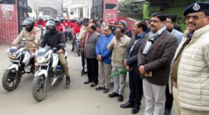 बदायूँ : 05 जनवरी। यातायात नियमों के संबंध में लोगों को जागरूक करने हेतु दिनांक 05 जनवरी 2023 से 04 फरवरी 2023 तक चलाये जा रहे अभियान सड़क सुरक्षा माह को सफल बानाने के उद्देश्य से कलेक्ट्रेट परिसर से जिलाधिकारी मनोज कुमार ने वरिष्ठ पुलिस अधीक्षक डॉ.ओ.पी.सिंह के साथ संयुक्त रूप से जागरूकता वाहन रैली को हरी झण्डी दिखाकर रवाना किया। जिलाधिकारी ने जनपद वासियों से यातायात नियमों का पालन करने का अवाहन करते हुए कहा