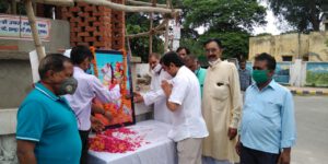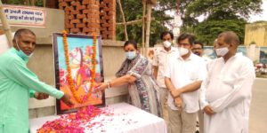 वीरांगना चौंक पर प्रतिमा स्थापना समिति के सदस्यों ने किया पुष्पार्चन