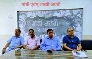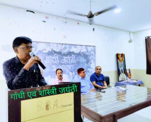 ने सांप्रदायिक सौहार्द बनाए रखने मंत्र गांधी से बेहतर कोई नहीं दे सकत। डॉ० मोहन लाल मौर्य राष्ट्रपिता महात्मा गांधी एवं लाल बहादुर शास्त्री के द्वारा किए गए महान कार्यों को हम सबको गीता की तरह पढ़ना चाहिए जिससे सामाजिक, सांस्कृतिक एवं धार्मिक उन्नयन स्वत: स्थापित हो जायेगा। इसी प्रकार महाविद्यालय के वरिष्ठ प्राध्यापक डॉ सिद्धार्थ कश्यप , डॉ० शिवराज कुमार, डॉ० मनवीर सिंह, डॉ० आशीष सक्सेना एवं डॉ सिखा शाक्य ने अपने विचार प्रस्तुत किए। कार्यक्रम में डॉ० एस के सिंह, डॉ० आशीष गुप्ता, डॉ० सत्यम मिश्र, डॉ० आर के शर्मा, डॉ० मधु शर्मा, श्री रवि कुमार, श्री अक्षत अशेष आदि उपस्थित रहें।